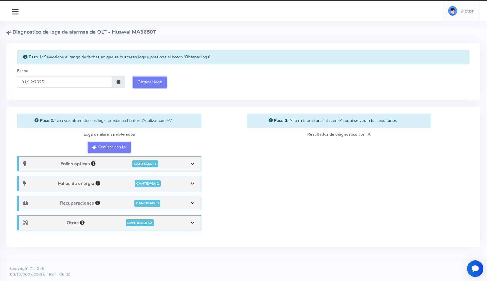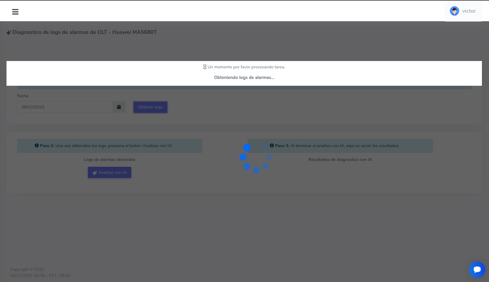2 Una vez obtenidos los logs, debes presionar el botón 'Analizar con IA', de esta forma comenzará el análisis de la información.